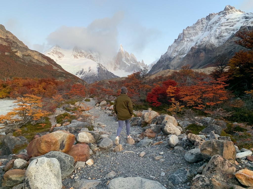 Our first stop in Argentina was to El Chaten, a village within Los Glaciares National Park on the Argentinian side of Patagonia. We took a bus from Puerto Natales in Chile, to El Calafate, where we were to take a connecting bus to El Chaten. However our first bus was delayed, so we missed our connecting bus and with no cash or internet (as we had entered into a new country), we didn’t have many options! We ended up meeting two Canadian brothers, Ben and Jordan, who were also looking for a place to stay for the night. In the end we all stayed at a hostel next to the bus station which was also beside a pizza restaurant and a bar, so it turned out to be a great night! We were able to get an early bus the next morning, which got us back on track again.