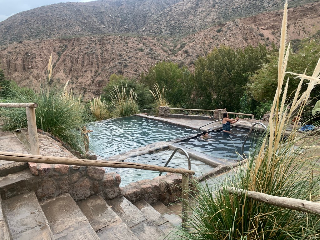 In Mendoza we also spent a day at some natural pools. It was a bit chaotic when we arrived, but we were just happy to be in hot water! The showers have been …Interesting!!