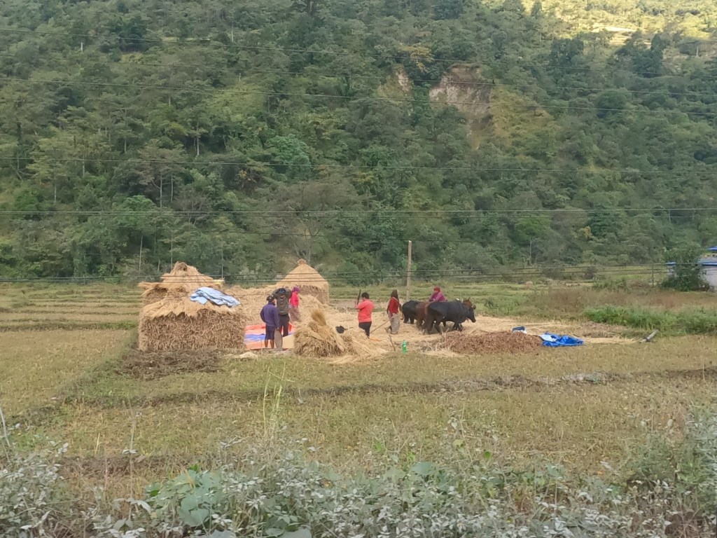 Along the road, we past many villages and towns (although hard to differentiate which was which) and also saw many people out harvesting rice. I took a few snaps and videos of the journey. There were even a few tractors on route!!