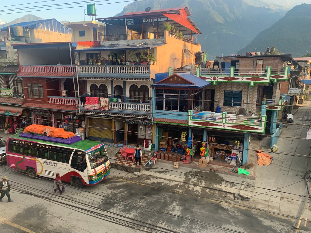 I left Kathmandu at 7am this morning and took a 7 hour bus to Besisahar. Despite being rocky along the way, it wasn’t half as bad as I had expected! We stopped once for a toilet (squat) break. I didn’t realise the luxury I was living in before now!! I also didn’t realise the bus that was fully occupied when we left, could fit another 5 people in along the way!