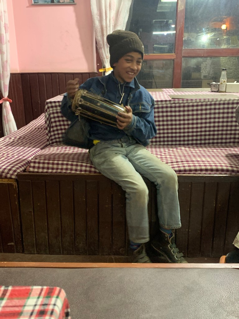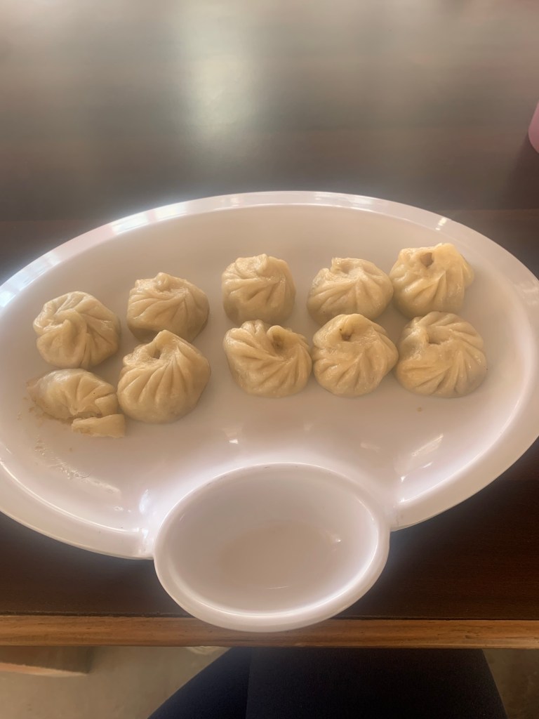 Along the way we stopped for lunch in Sri Kharka, where I tried ‘Momo’ (dumplings) for the first time. They were tasty, but I haven’t tried them since! 🙂