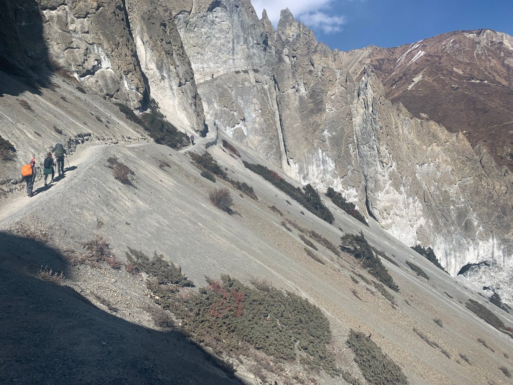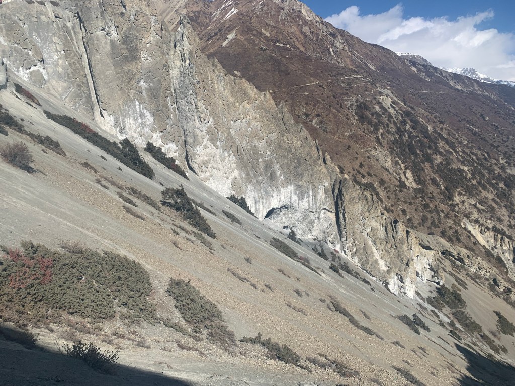 The most difficult part of today however, was crossing a landslide for 2 hours. The path was narrow and you also had to keep a look out for stones falling from above! Thankfully, I got through without any casualties and before it got too windy!
