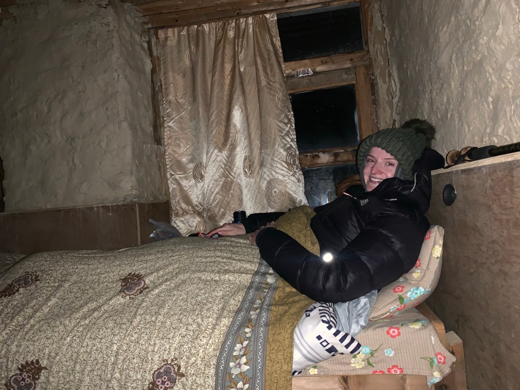 Naturally, it got gradually colder the higher up we got. However, sleeping in ‘High Camp’, the last spot before going over the pass, was definitely the worst – reaching lows of -13! This was also the first night that we had to share rooms as there was only one place to stay at ‘High Camp’, and it was definitely over capacity! The toilet was also outside!