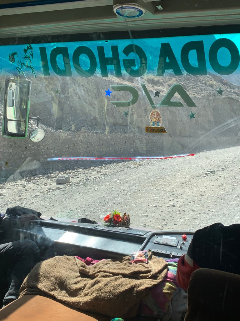 Most of the journey was also on the edge of a cliff! At one stop, there were a group of police officers walking towards the bus. Naively, I thought they were coming to inspect – but no, they too got onboard the already jam packed bus! We made it though!